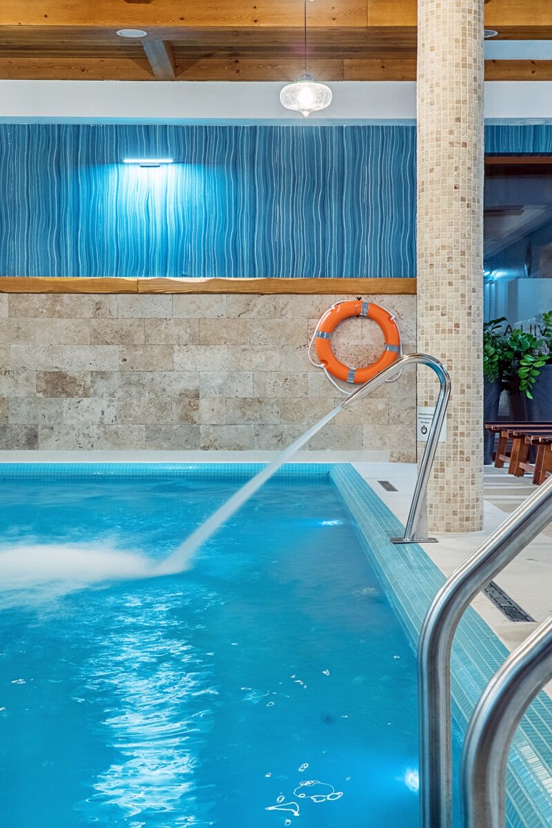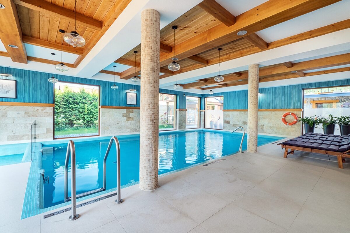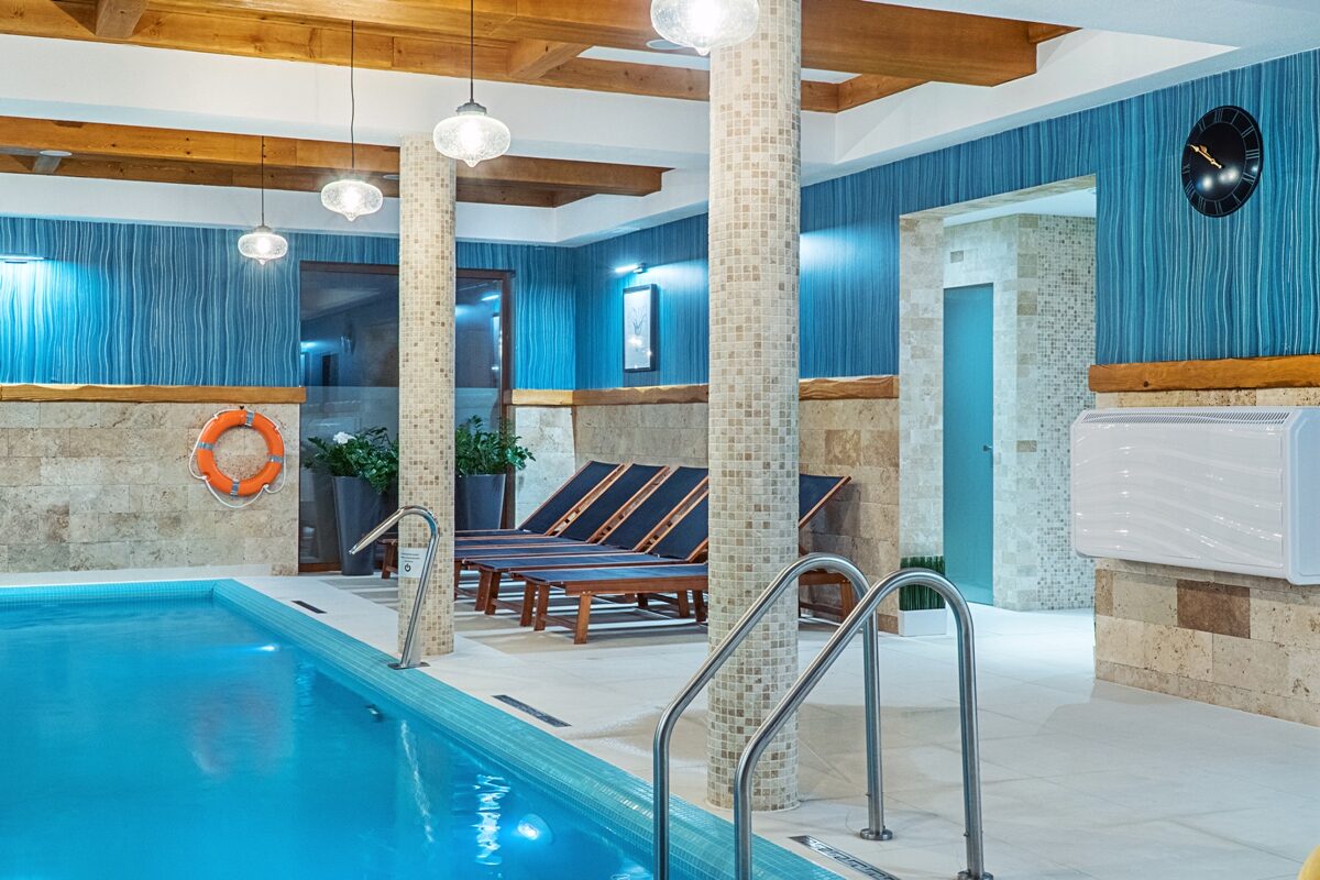 W naszej strefie SPA znajduje się kryty basen (9 x 5 m, gł. 120 cm, temp. 29°C), w którym cała rodzina może się zrelaksować i pobawić. Dysza masująca i przeciwprąd sprawiają, że to nie tylko miejsce zabawy, ale też regeneracji i wodnego treningu.