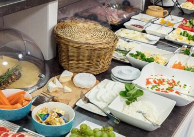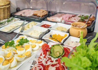 Przygotowujemy dla naszych Gości różnorodne dodatki warzywne i tradycyjne surówki, a także bufet sałatkowy: każdy z Państwa może przyrządzić sałatę własnej kompozycji według upodobań (w okresie bardzo wysokiego sezonu, wysokiego sezonu oraz sezonu – korzystanie z obiadokolacji jest obligatoryjne w ramach pakietów pobytowych).