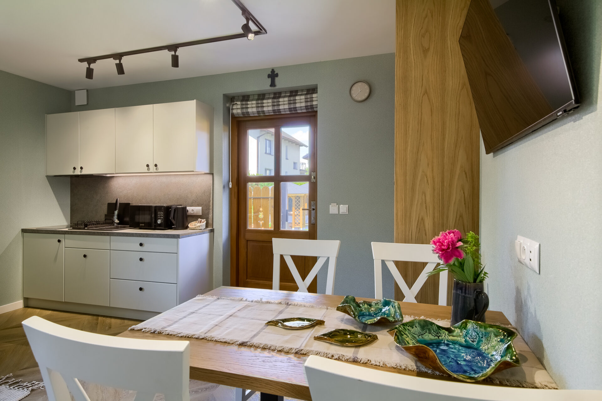 - śniadanie w formie bogatego bufetu szwedzkiego (jeżeli w obiekcie przebywa nie więcej niż 10 osób- śniadania serwowane do stołu)
